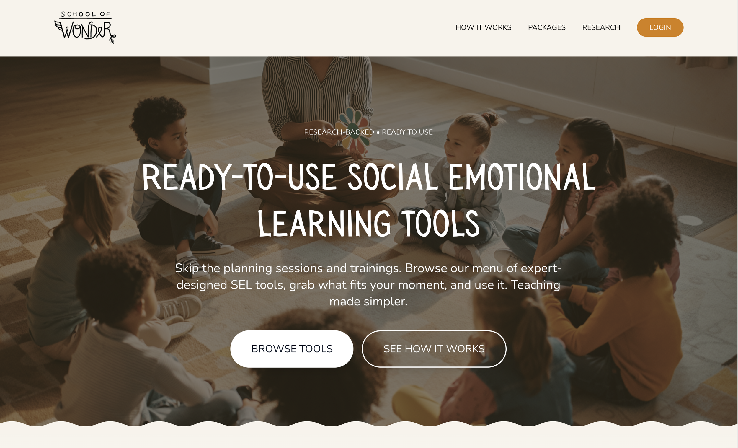We reframed School of Wonder’s curriculum to emphasize low time investment, breaking it into modular tools designed to support educators within their existing curricula rather than requiring adoption of entire lessons.